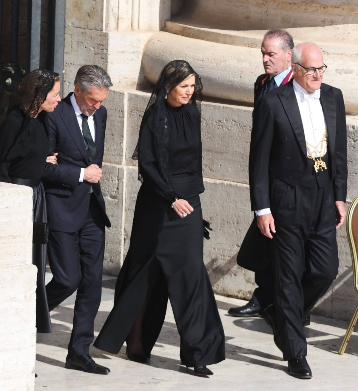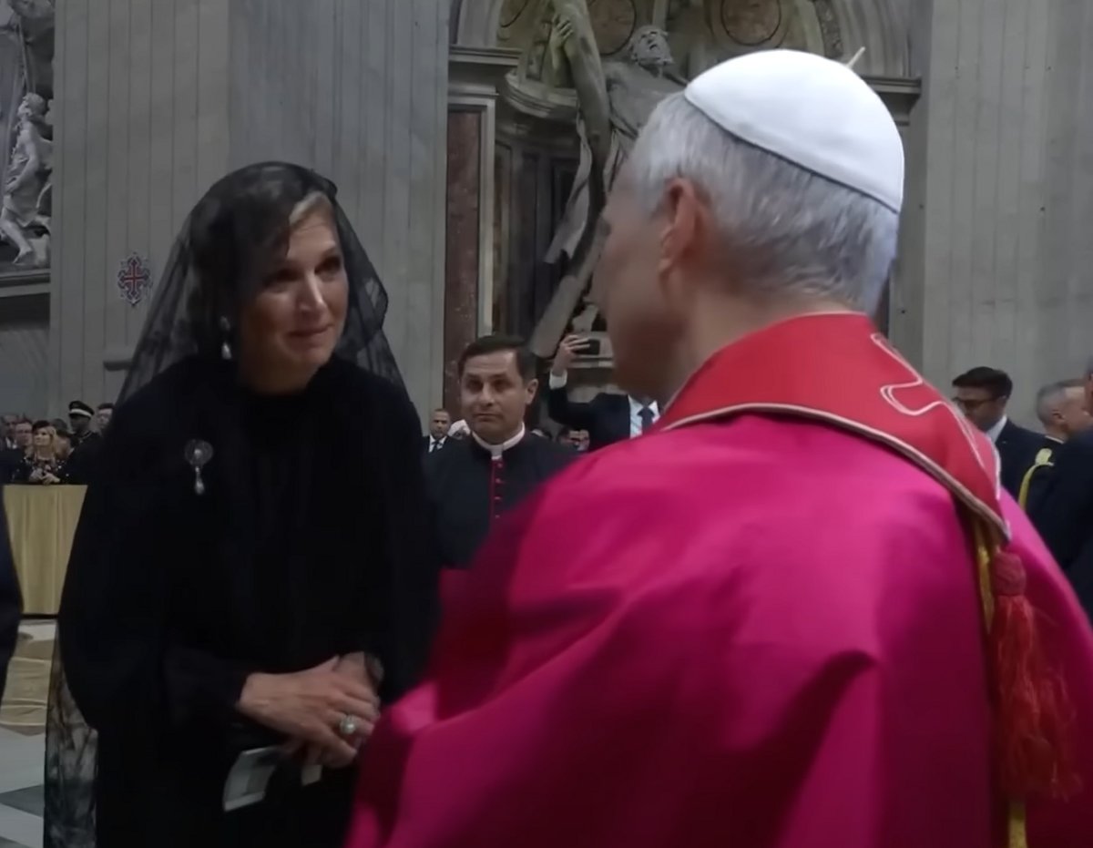 Representing the Netherlands at the papal inauguration was Queen Máxima. Though King Willem-Alexander and their three daughters are Protestant, Queen Máxima was raised Catholic and was not required to convert when she married the future King of the Netherlands in 2002. For Sunday’s mass, she wore a black blouse and long skirt with a black veil.