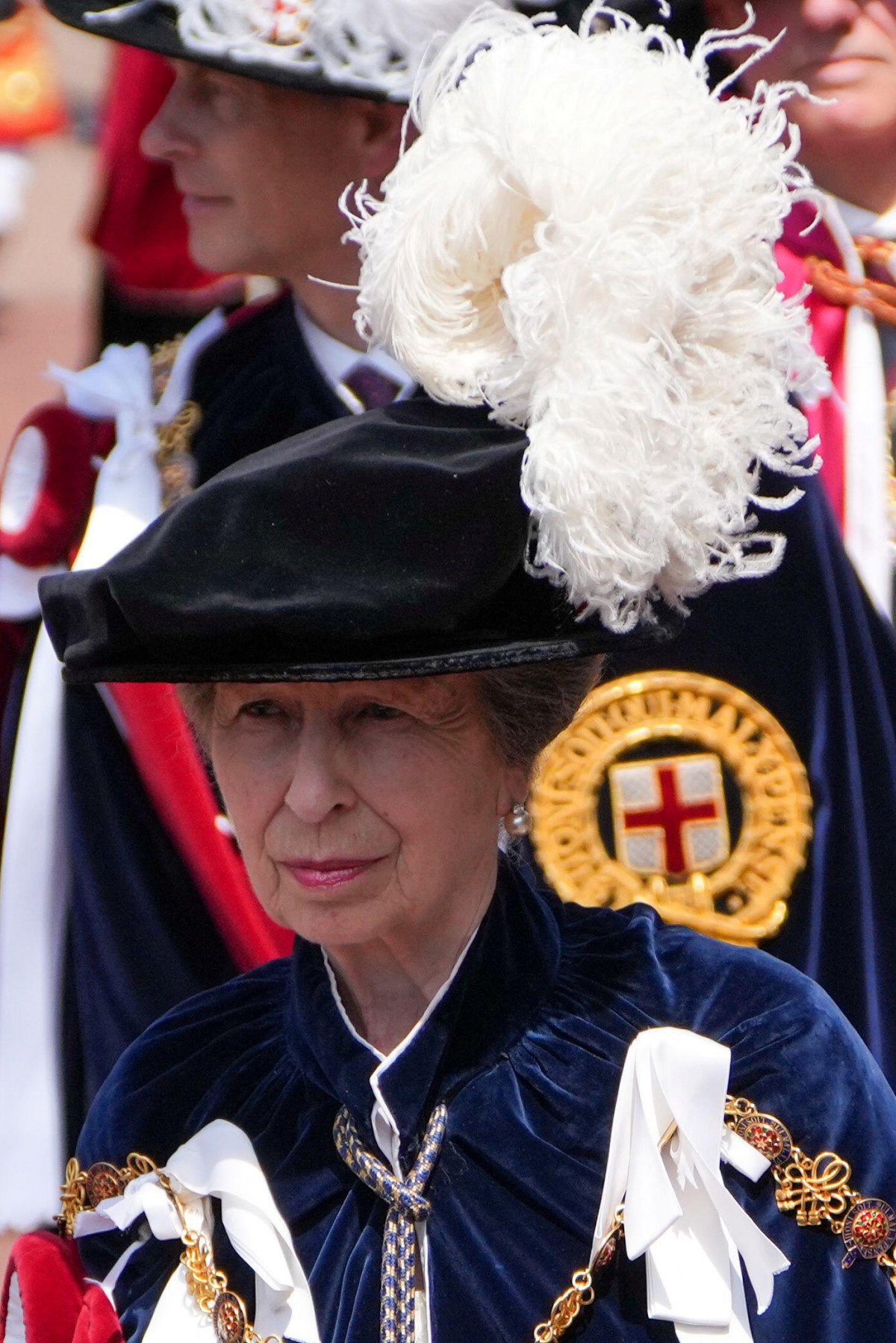 King Charles III and Queen Camilla, in their Garter and decorations, led the procession from Windsor Castle to St. George’s Chapel for the annual Garter Day service. Also attending the service were several more royal members of the order: the Prince of Wales, the Princess Royal, the Duke of Edinburgh, the Duke and Duchess of Gloucester, and the Duke of Kent.