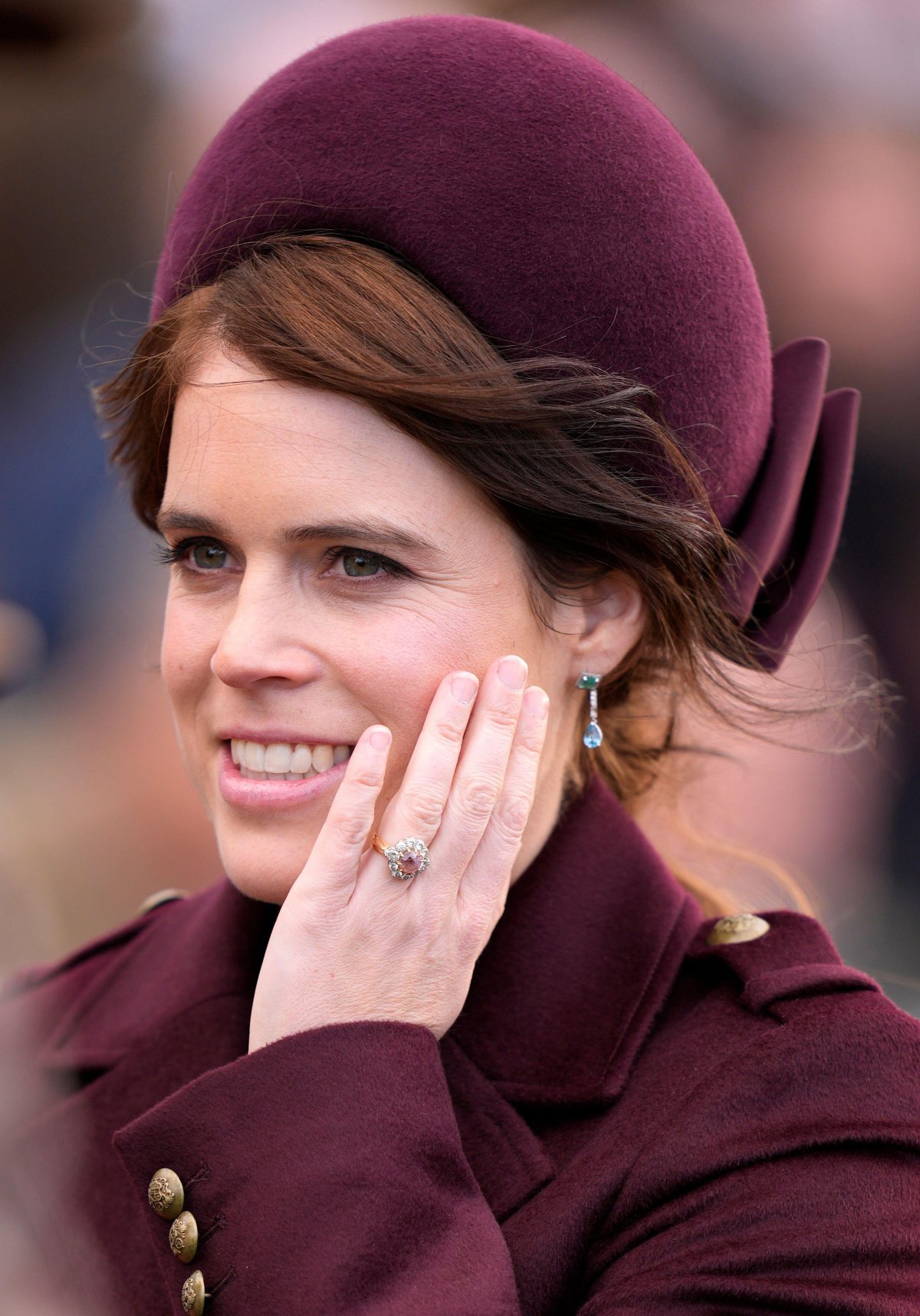 We previously saw Eugenie wear these earrings at Cheltenham in March. Some have speculated that these might be a sentimental family gift from Jack, as their birthstones are aquamarine (for Eugenie) and emerald (for Jack).