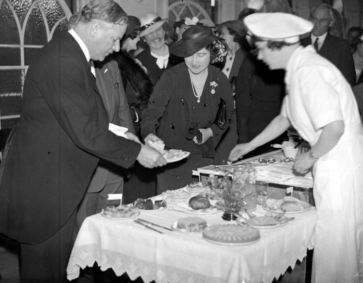 The diamond watch brooch was later worn by the Queen Mother when she was Duchess of York. This photograph, previously highlighted by Beth on Instagram, was taken in July 1936 during Elizabeth’s visit to a Scottish exhibition at the British Industries House in London.