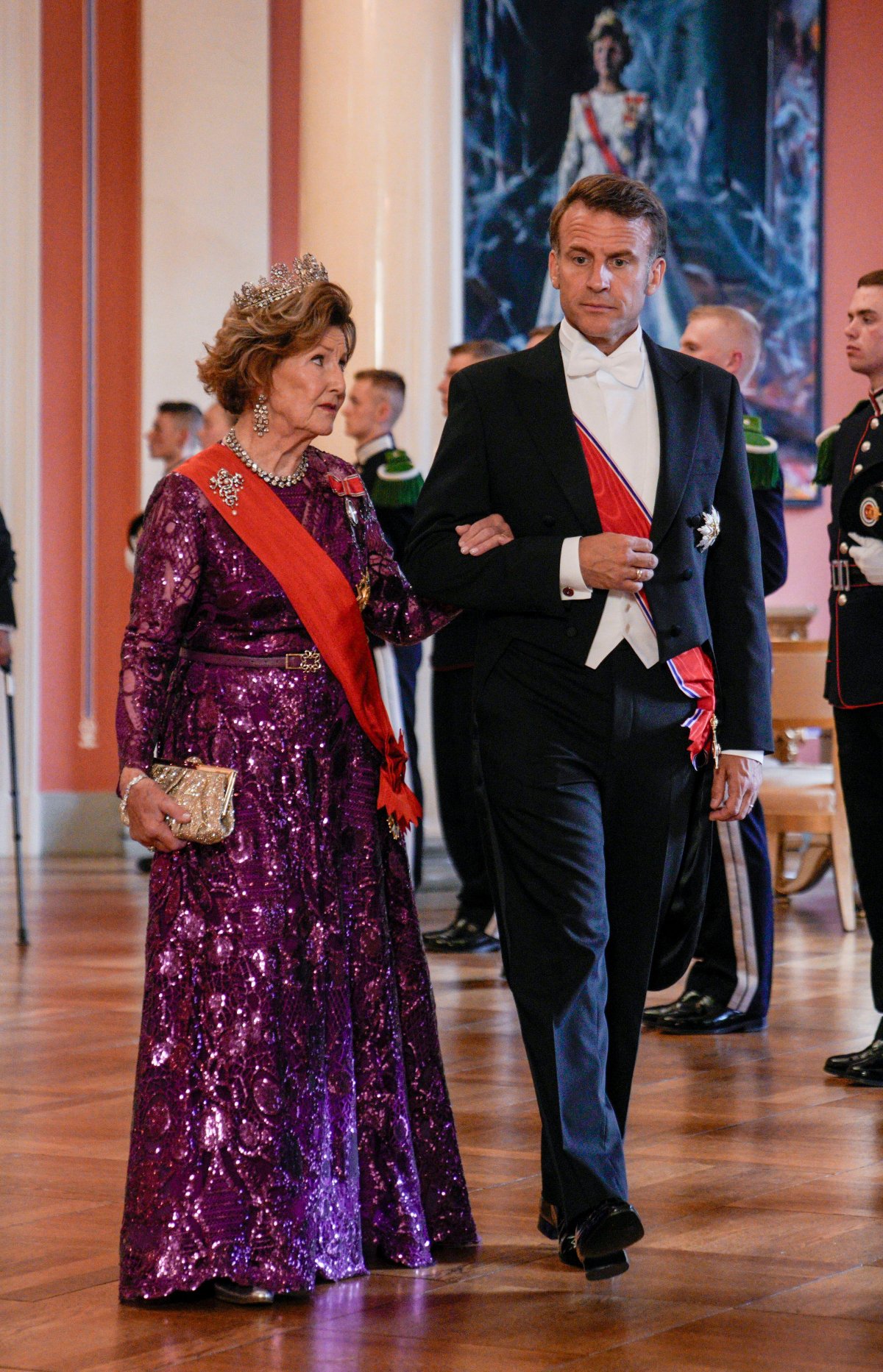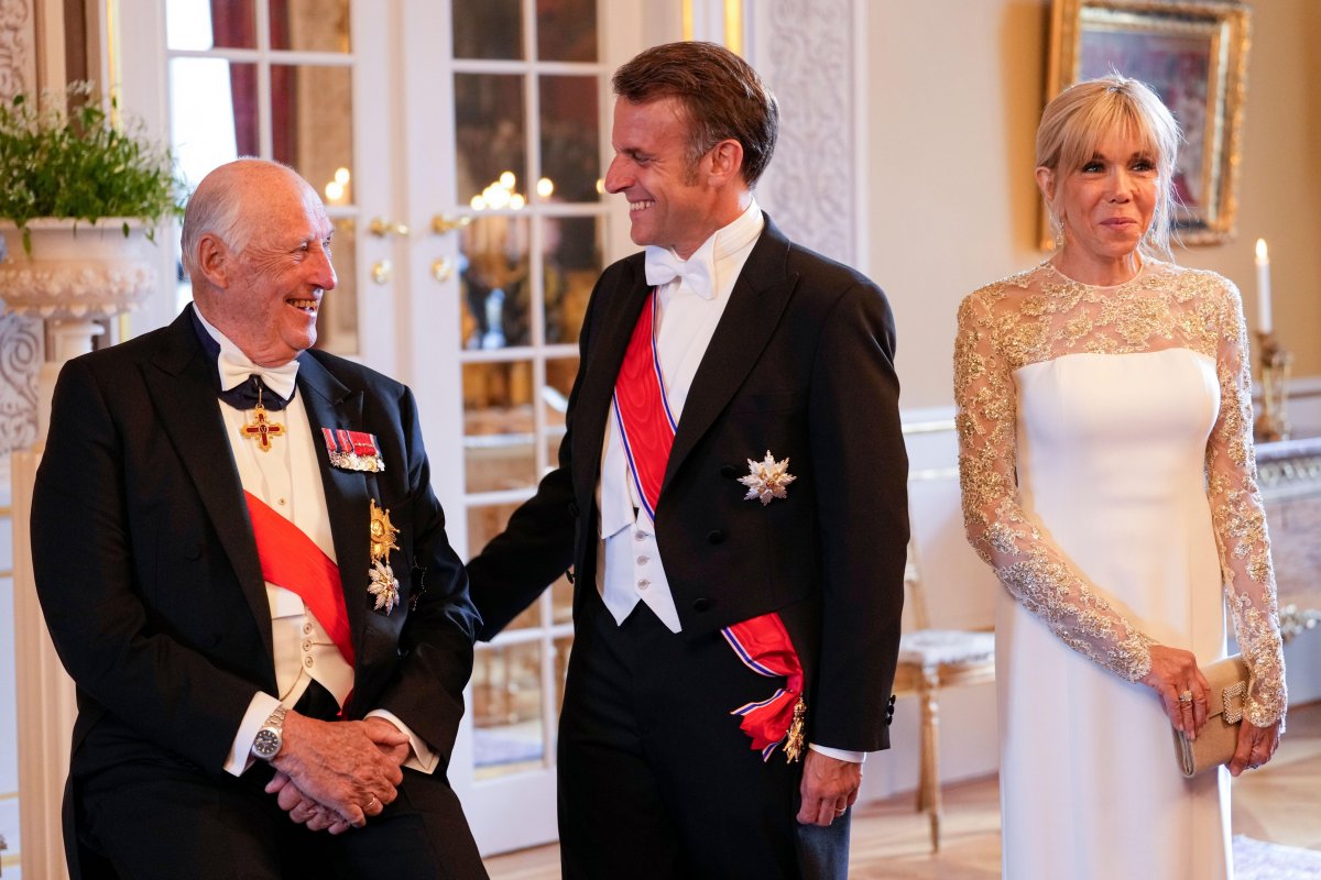 King Harald V and Queen Sonja rolled out the red carpet for President Emmanuel Macron and Brigitte Macron on Monday, hosting a white-tie gala dinner for the presidential couple at the Royal Palace in Oslo. The Macrons are currently on an official visit to Norway.