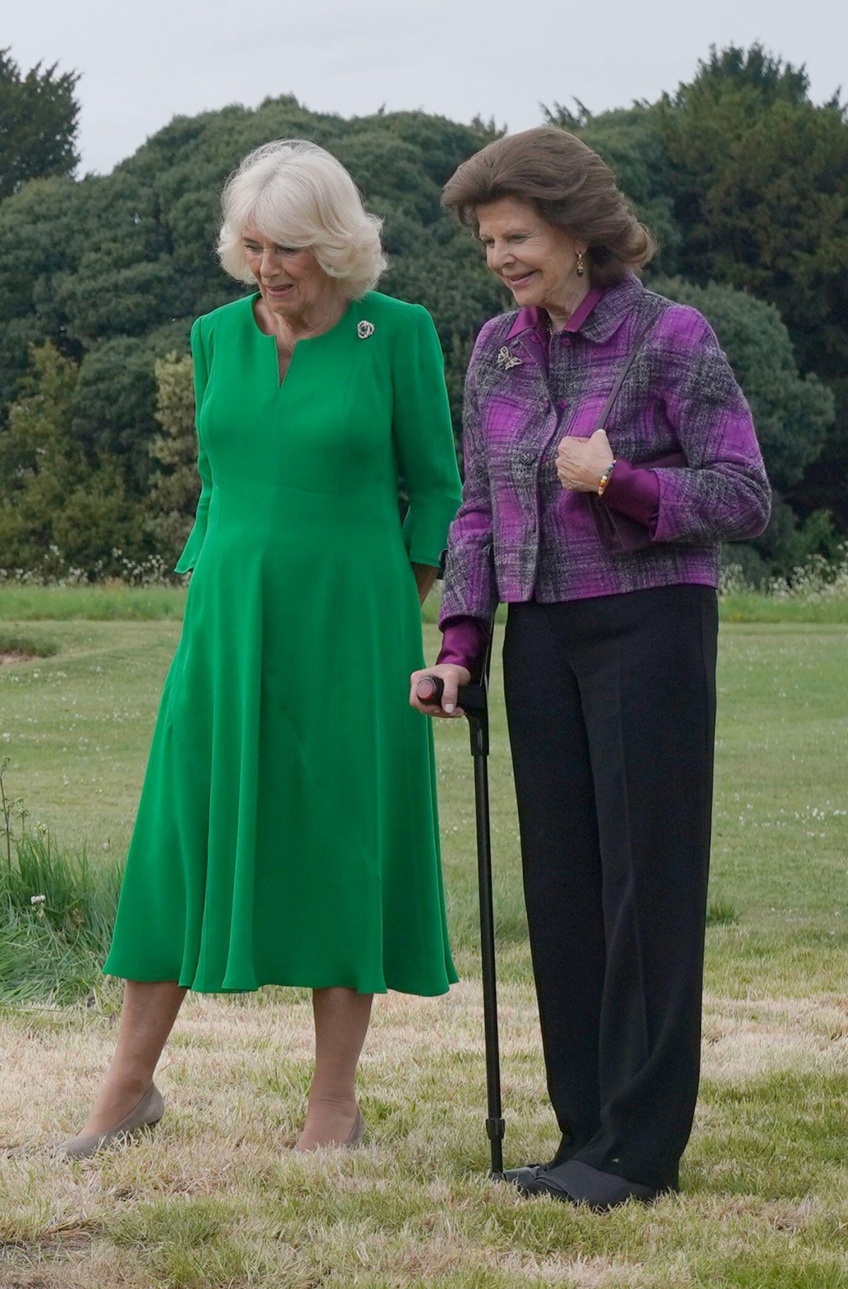 And in May, she wore the dress and the brooch to welcome the King and Queen of Sweden to Windsor Castle, where King Carl Gustaf and King Charles planted an oak tree from Solliden Palace on the castle grounds.