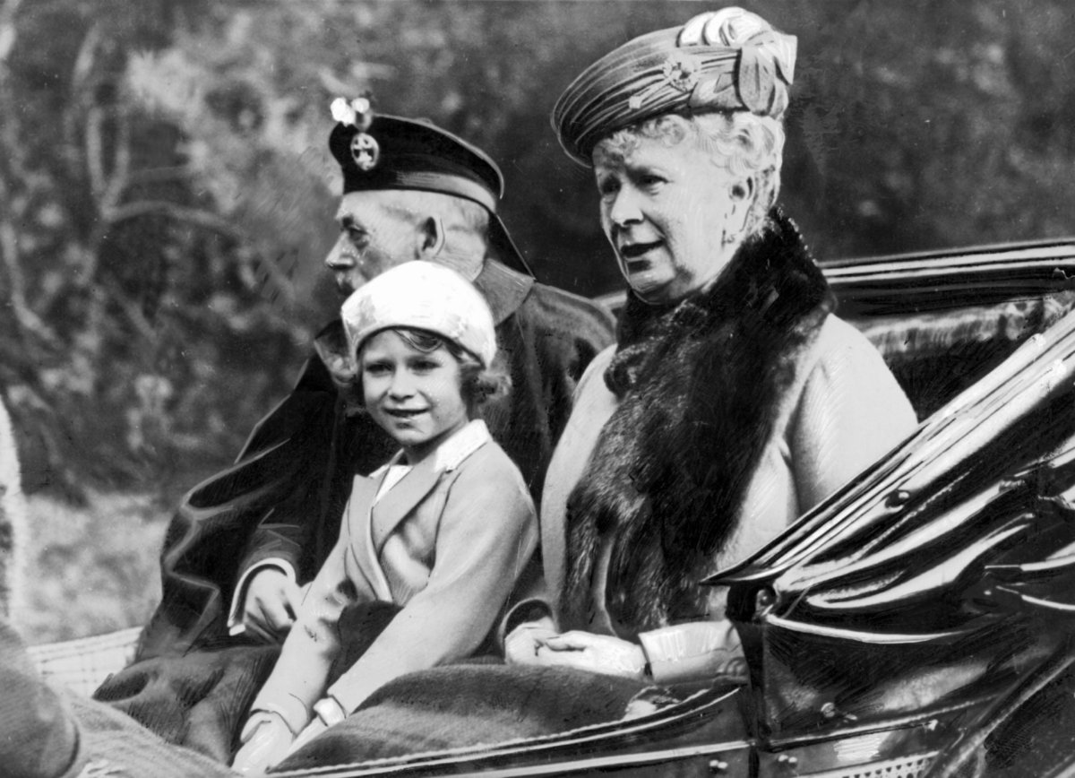 The brooch arrived in Queen Mary’s jewelry box during the reign of her husband, King George V. The piece’s design features clear Art Deco influences, especially in the geometric design of the stem of the thistle. Here, in a photograph taken in the summer of 1935, Queen Mary wears the brooch pinned to her hat for a church service near the Balmoral estate.