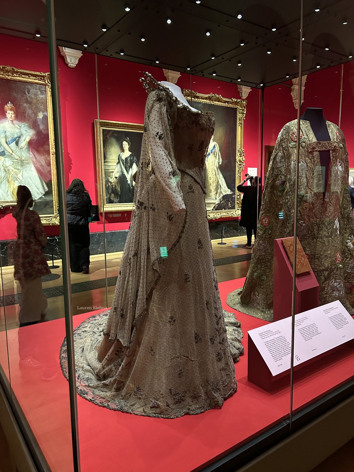 The Edwardians: Age of Elegance has been dazzling visitors to the King’s Gallery, Buckingham Palace now for several months. I was fortunate to be invited to the press preview ahead of the exhibition’s opening in April, and I spent hours marveling at the artwork, fashion, and art objects on display as part of the show. Above, coronation attire worn by Edward and Alexandra in 1902, including her fabulous coronation gown.