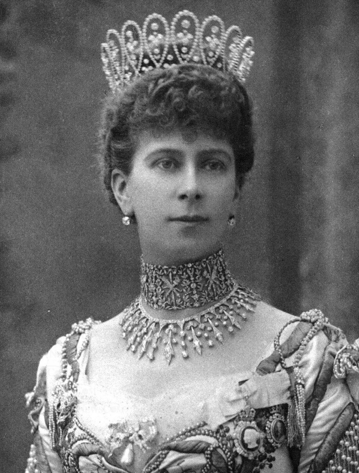 How about a closer look? Here’s another view of Queen Alexandra’s Diamond Kokoshnik Tiara, a splendid wall of diamonds made by Garrard in 1888. It was presented to Alexandra, who was then Princess of Wales, as a silver wedding anniversary present by a committee of aristocratic ladies. They asked her for input on the gift, and she suggested something similar to the traditional kokoshnik-style tiaras worn by her sister, Empress Marie Feodorovna of Russia. This magnificent jewel was the result.