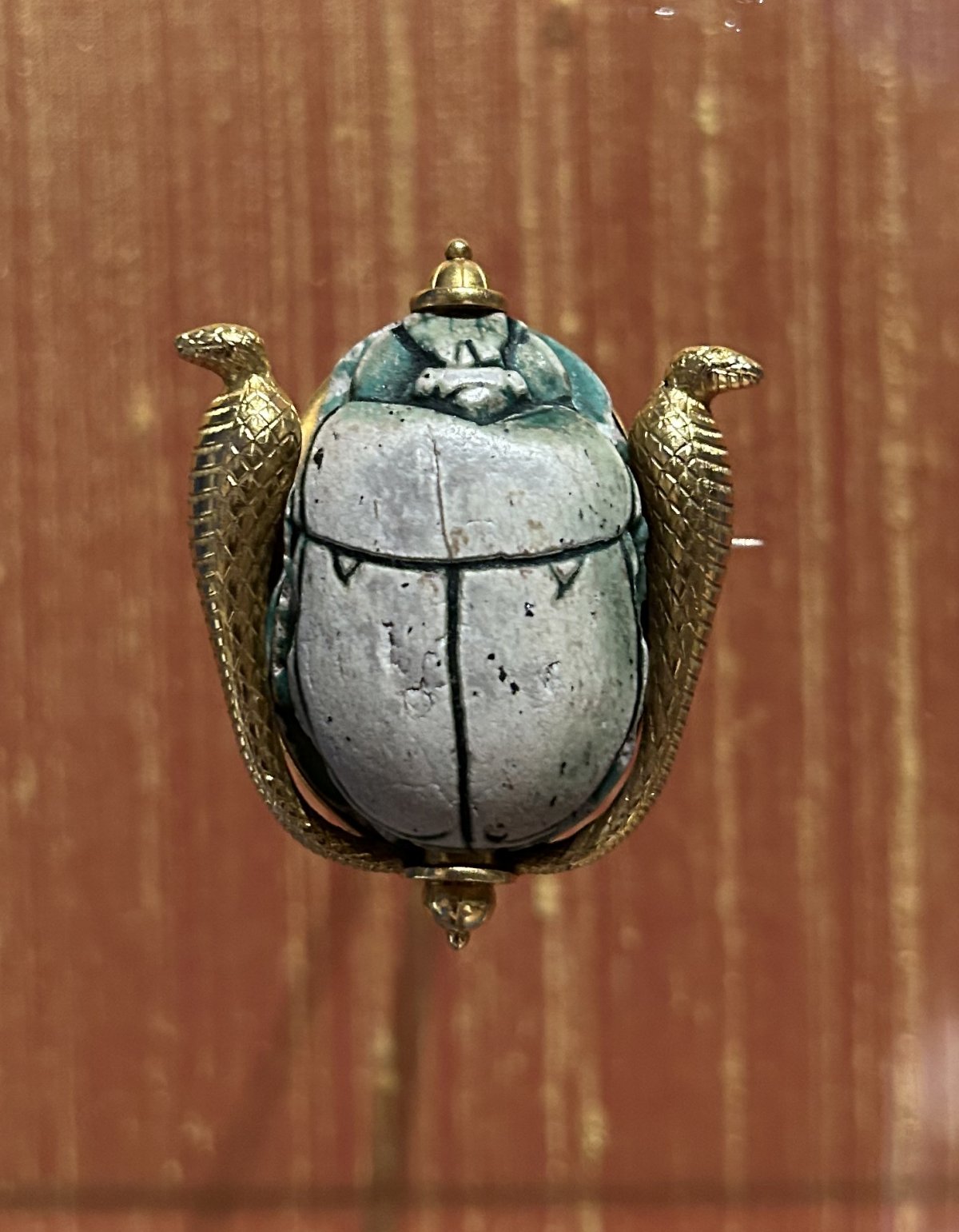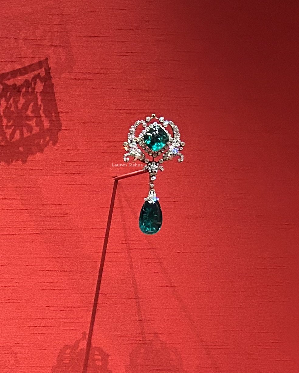 As you work your way through the other exhibition rooms, there are also a few more jewelry highlights. One of them is this unusual scarab brooch. It’s thought that the scarab was acquired by Edward VII during a trip to Egypt in 1862 and brought back to London to be set as a brooch for his bride-to-be. The jewel, made by Phillips, also features a pair of gold serpents in its design.