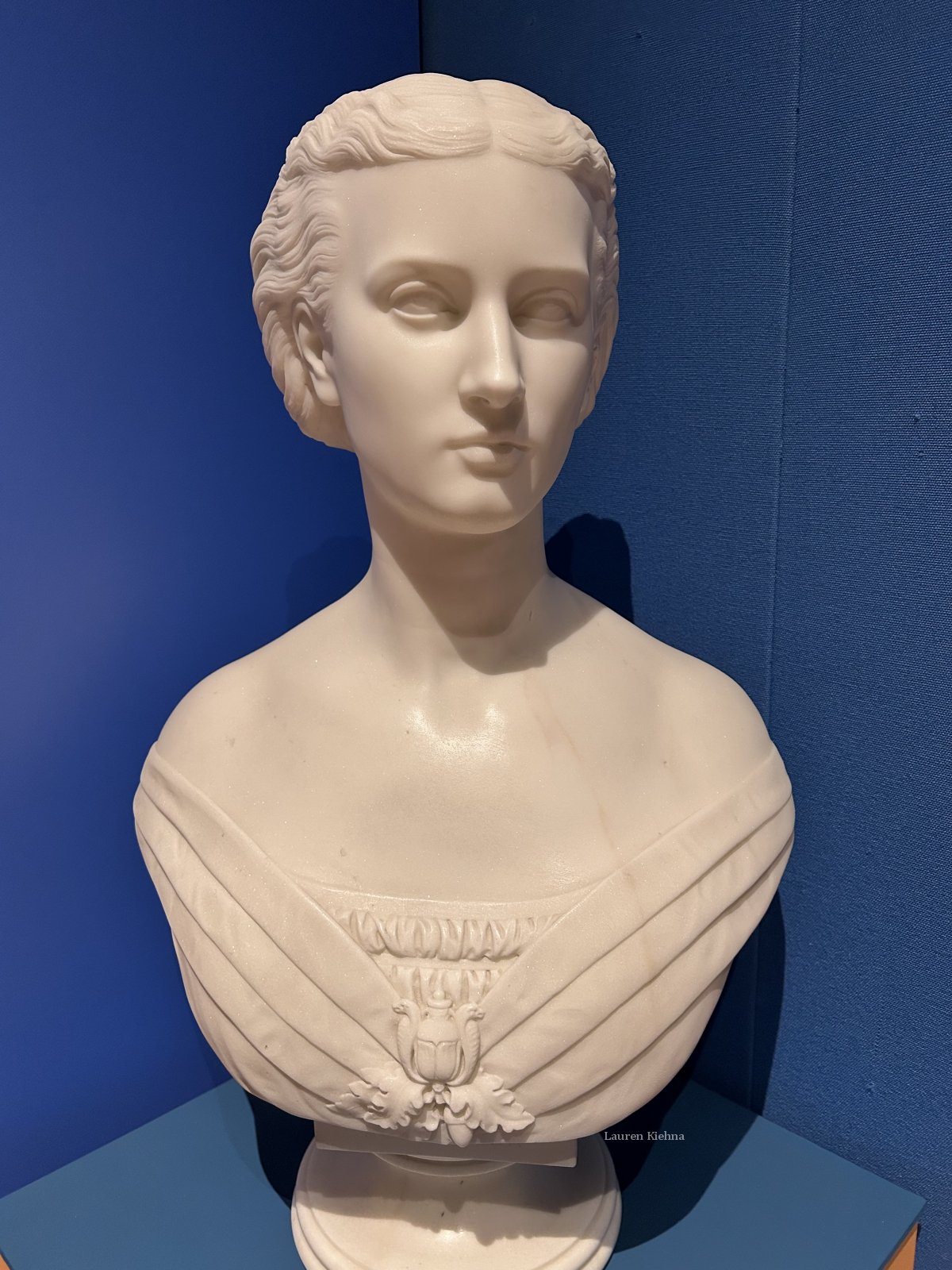 Alexandra was clearly delighted with the gift, because shortly after the couple’s royal wedding in 1863, she chose to wear it when she sat for a bust sculpted by Mary Thornycroft. The bust is included in the Edwardians exhibition, sitting near the real brooch, allowing the viewer to compare them in person.