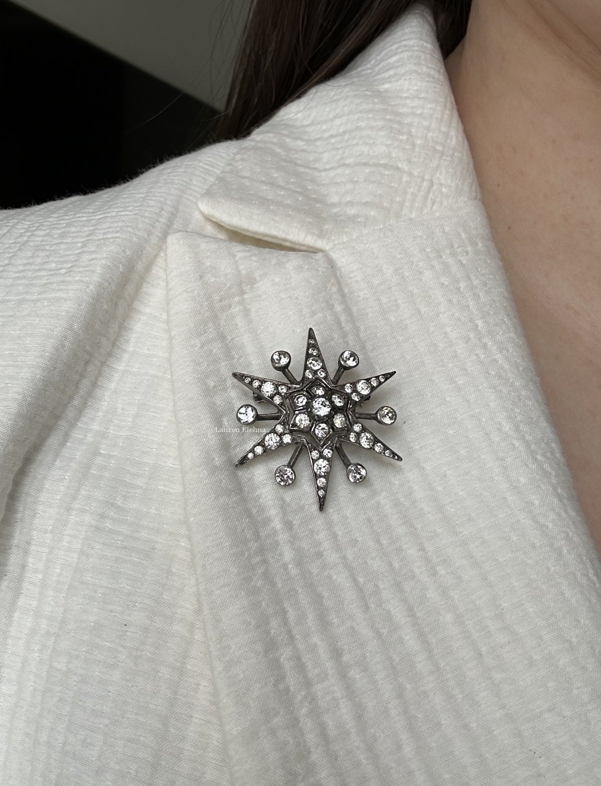 As a postscript, I brought along a piece of jewelry from my own collection when I viewed the exhibition—because who can go to the gallery at Buckingham Palace without a brooch?—and some of you have nudged me for more information on the jewel. For the occasion, I wore an antique star brooch from my jewelry box. The brooch dates to the 1920s and is made of sterling silver set with paste stones. (I can hear you all now yelping about how I need to have it cleaned!)