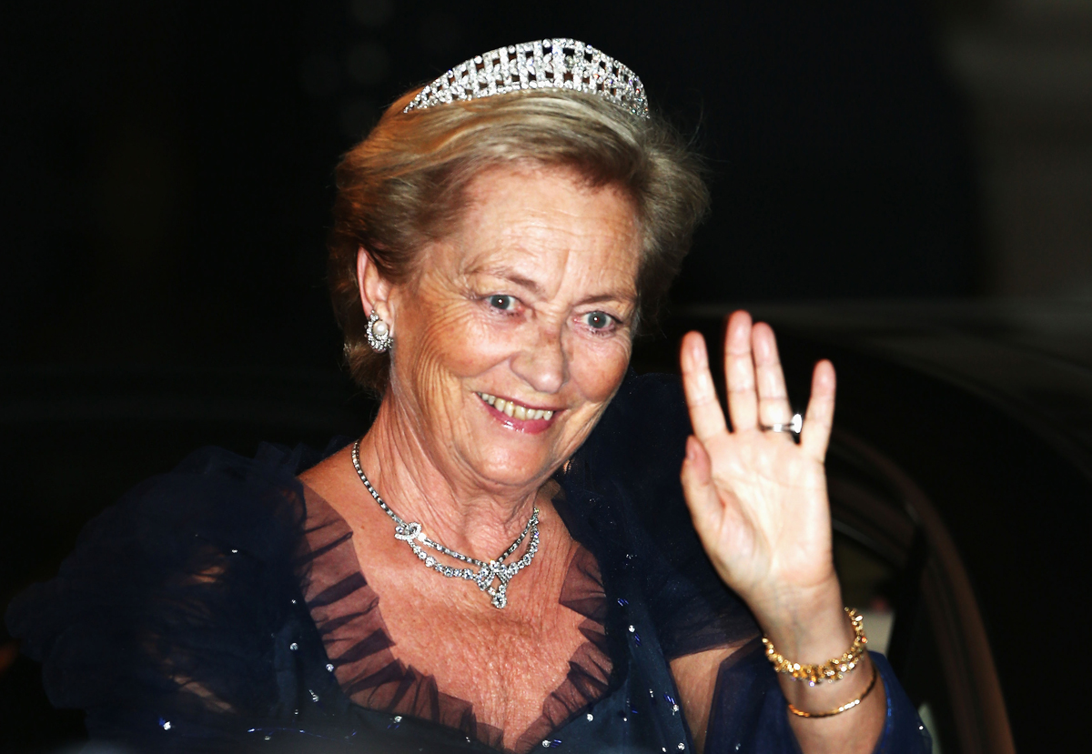 Queen Paola’s Diamond Necklace Tiara: A delicate Y-shaped necklace featuring numerous diamond drops, able to be worn on a tiara frame. Worn by Queen Paola.