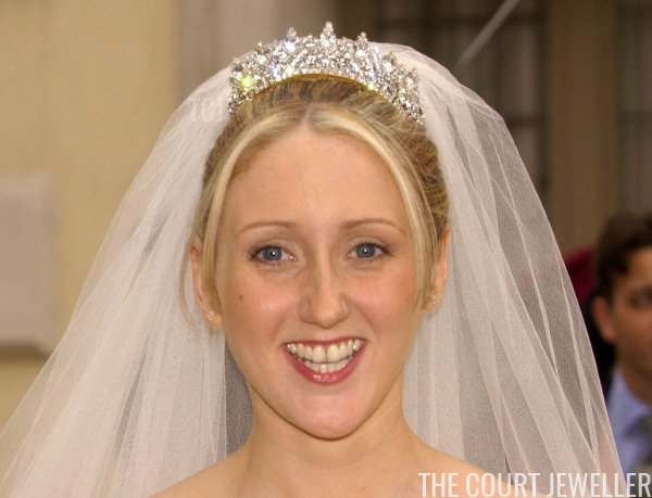The Ulster Wedding Tiara: An all diamond tiara that rises to a series of points. Worn by the present Countess of Ulster as a wedding tiara (2002).