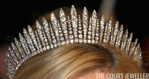 The Miller Fringe Tiara: A classic example of the diamond fringe tiara, likely dating to the second half of the nineteenth century or the first half of the twentieth century. Given to Princess Maria Olympia as a christening present by her grandmother, Chantal Miller. Worn by Princess Marie-Chantal and Princess Maria Olympia.